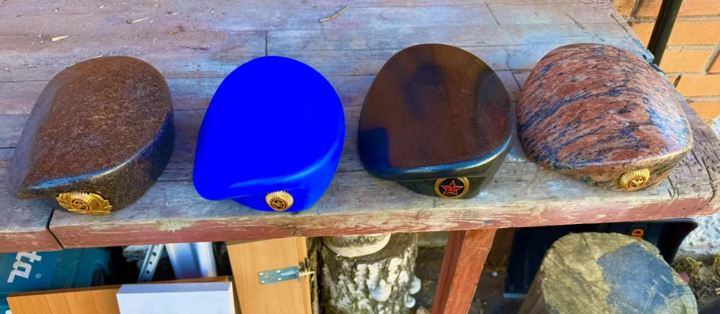 - Собственное производство. Наличие своего цеха позволяет нам воплощать сложнейшие задачи: от полноростовых статуй до вырезания из камня атрибутов службы (беретов, наград, оружия).