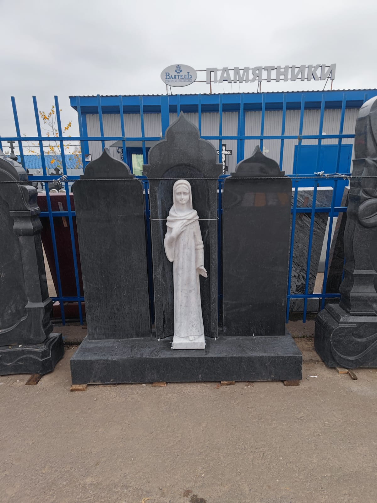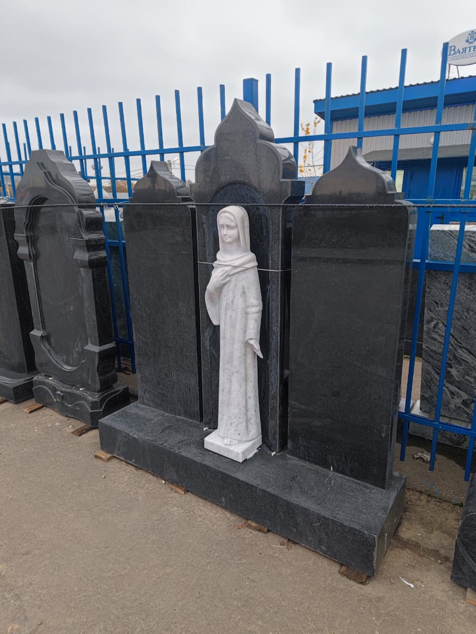 Памятник № ВТВ-153 – мемориальный комплекс на 2 могилы. Три гранитные стелы, стилизованные под часовни с куполами. Центральный элемент — скульптура скорбящей девы из белого мрамора. Боковые стелы предназначены для портретов и надписей.