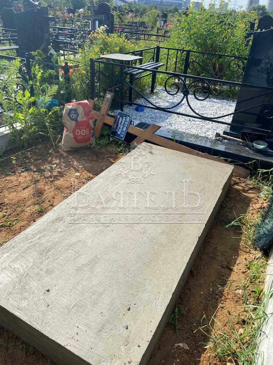 Основой комплекса служит прочная бетонная плита, гарантирующая стабильность всей конструкции на долгие годы. Эта плита искусно облицована полированной гранитной плиткой из черного Габбро-Диабаза. Этот выбор камня не случаен: Габбро-Диабаз отличается глубоким, насыщенным черным цветом, высокой плотностью и исключительной устойчивостью к любым погодным условиям, символизируя незыблемость и скорбь.