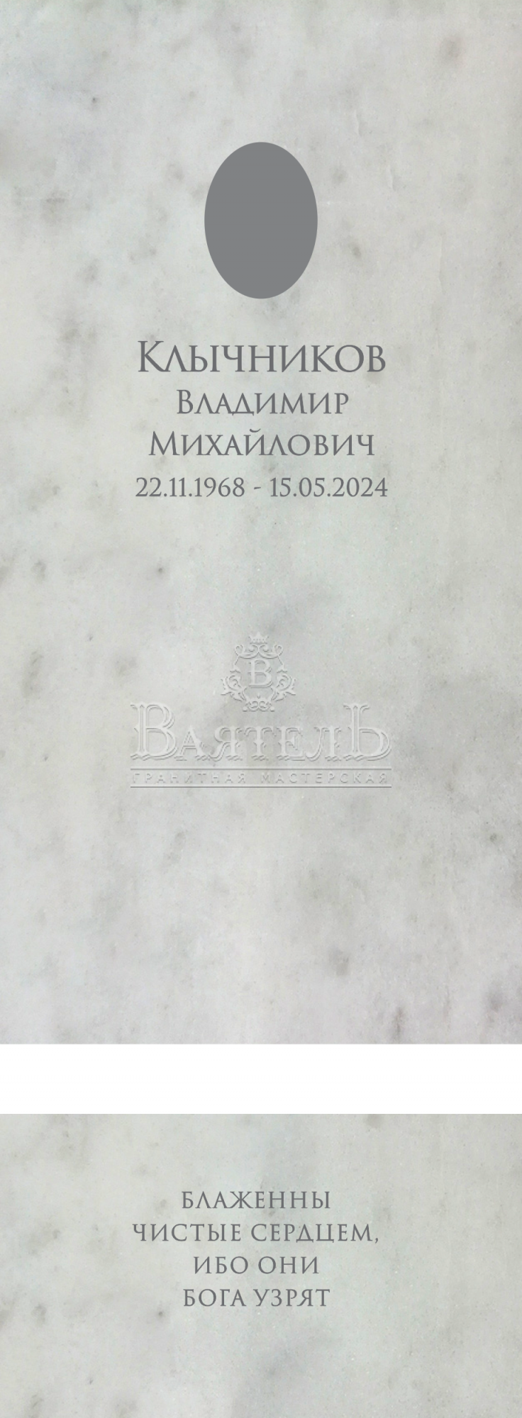 В центре композиции возвышается мраморный склеп, собранный из отдельных, тщательно подогнанных плит мрамора Коелга. Коелга — это высококачественный, благородный мрамор с нежным, светлым оттенком, который обеспечивает контраст с темным основанием, подчеркивая чистоту и светлую память.