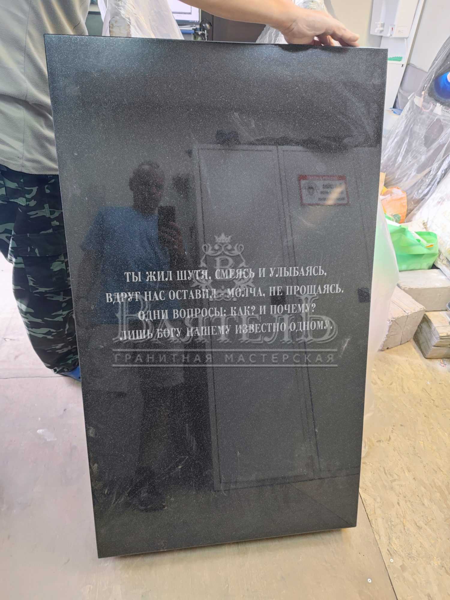 - Верх облицован цельной плитой толщиной 3 см из гранита Габбро-Диабаз.